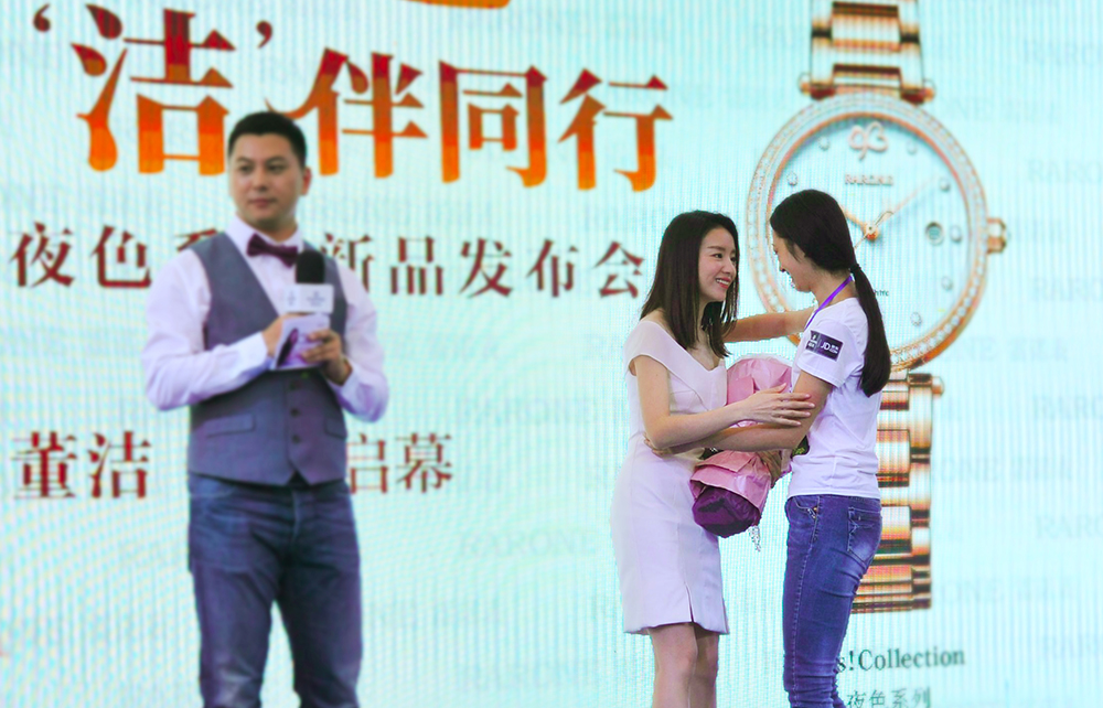 董潔老師與雷諾表總經(jīng)理詹江洲先生接受媒體采訪,并合影留念。
