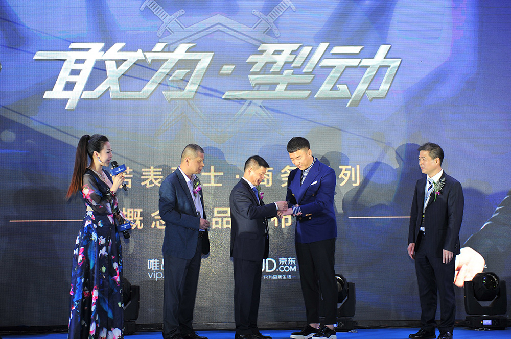 發布會現場,雷諾表董事長詹西洲先生親自為孫紅雷先生佩戴騎士· 商務運動新品,新品表款的超高顏值以及時尚運動的設計非常符合孫紅雷先生的氣質,帥雷雷也表示這款表和他本人的個性十分契合,非常期待新品能盡快與消費者見面。